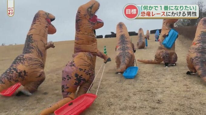スタート地点を目指して急な斜面を恐竜たちが上っていきます。