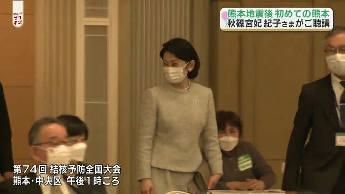 秋篠宮妃 紀子さまがきょう熊本を訪れ、結核予防全国大会に出席されました。紀子さまの熊本訪問は2015年以来となります。