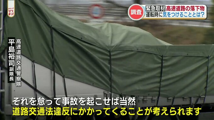 高速道路警察隊 平島副隊長「落下したり飛散したりする恐れがあるものには袋をしたり、シートをする。それを怠って事故を起こせば、当然、道路交通法違反にかかってくることが考えられます」