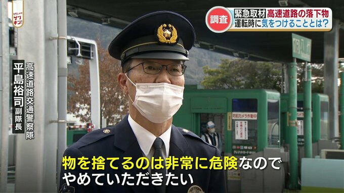 高速道路警察隊 平島裕司副隊長「高速道路は速度も出ているので、ちょっとした障害物で急ハンドルを切れば大事故につながる恐れがあるので物を捨てるのは非常に危険なのでやめていただきたい」