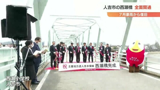 7月豪雨から復興 人吉市で一部流失の西瀬橋が全面開通 球磨村では宅地かさ上げ着工 熊本 2023年2月19日(日) 17:25 国内 3年前の7月豪雨で橋の一部が流失した 熊本県人吉市の西瀬橋(ニシゼバシ)の架け替え工事が完了し、19日全面開通しました。人吉市の西瀬小学校で行われた完成式典には、住民や関係者約70人が出席し テープカットが…
