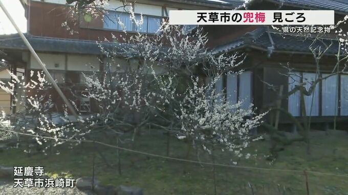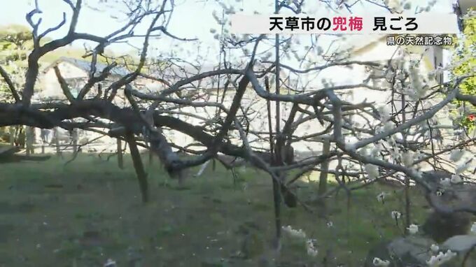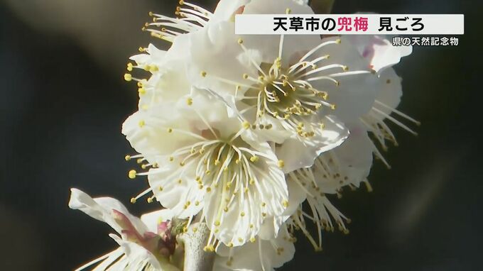 熊本県天草市では県の天然記念物に指定されている兜梅(かぶとうめ)が見頃となっています。