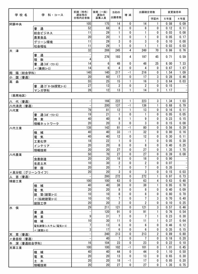 【熊本県公立高校入試】 2023年 後期選抜始まる 全日制平均倍率は「0.95倍」(全校倍率表有り)