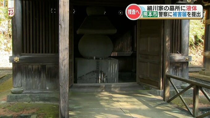 「泰勝寺(たいしょうじ)」跡の4つの御廟(ごびょう)に液体がまかれたような跡が見つかった問題で熊本市は2月21日、警察に被害届を提出しました。