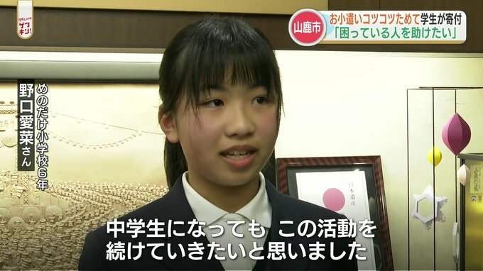 野口愛菜さん「3年間貯め続けた、大切なものなので山鹿のために使われると思うと本当に嬉しくて、中学生になってもこの活動を続けていきたいと思いました」