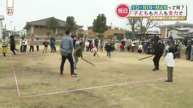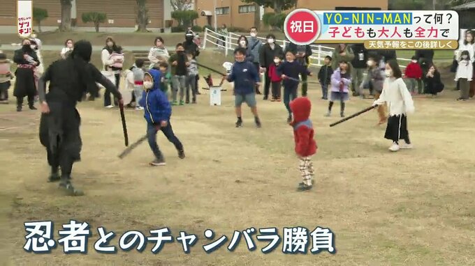 こちらはスポンジ製の刀を使った忍者とのチャンバラ勝負。制限時間は3分間、全ての忍者を倒したら…子ども達の勝利です!
