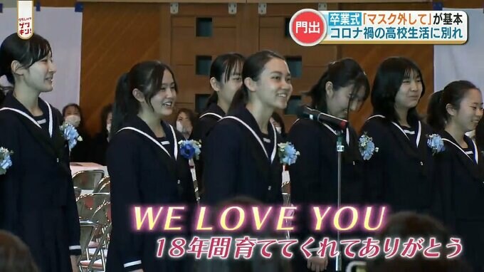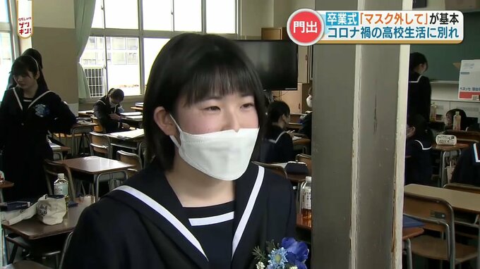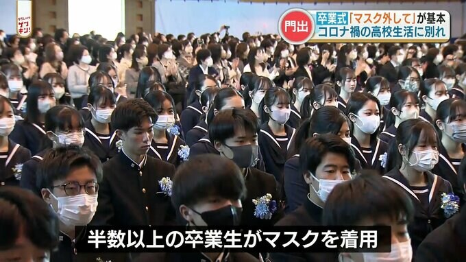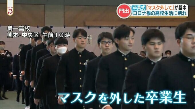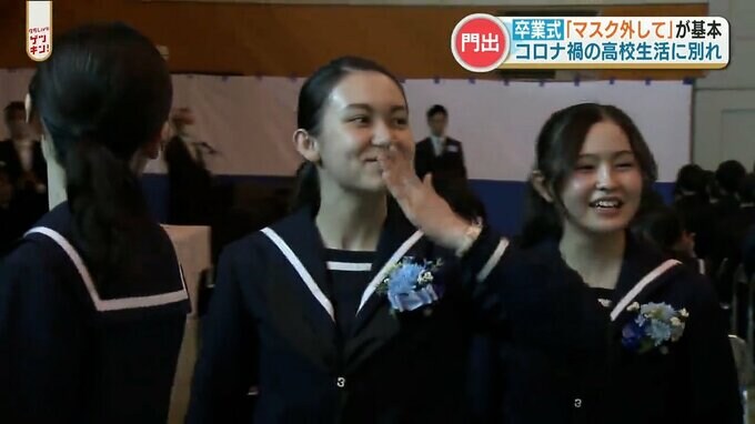第一高校の卒業式。マスクを外した卒業生の姿が。