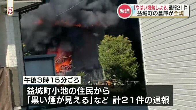 消防と警察によりますと3日午後3時20分ごろ、益城町小池(おいけ)の複数の住民から「黒い煙が見える」など、あわせて21件の119番通報がありました。