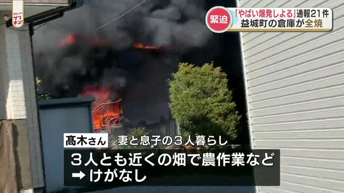 高木さんは妻と息子の3人暮らしですが、3人とも近くの畑で農作業などをしていたということで、けがはありませんでした。