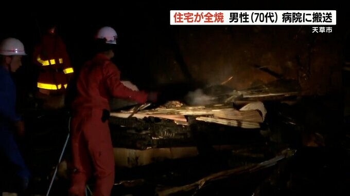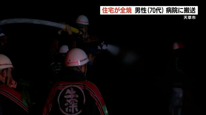 3月7日 夜、熊本県天草市の住宅が全焼し、この家に住む70代の男性がやけどをし、病院に運ばれました。