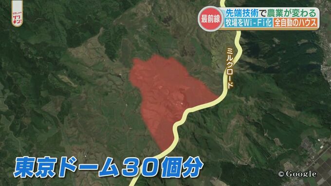 この牧場では東京ドーム30個分の牧野におよそ100頭の牛を放牧しています。