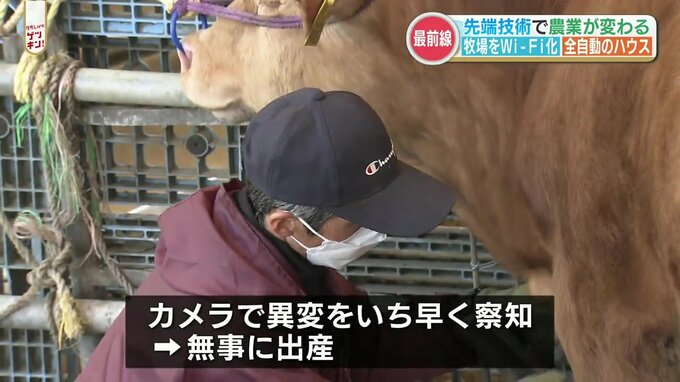 牛の様子をオンラインで確認できるよう牛舎にカメラを取り付けた日のこと。予定されていた牛のお産が思わぬ難産になったのです。カメラの映像で牛の異変をいち早く察知でき、すぐに介助したため無事に出産させることができました。