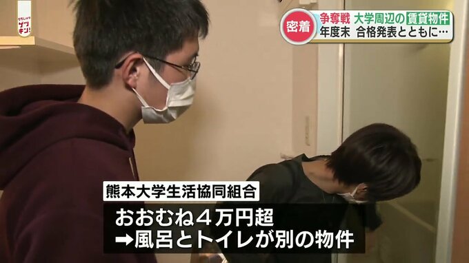 この1Kの部屋、家賃は4万7500円。生協によりますとおおむね4万円を超えると、風呂とトイレが別の物件になるということです。