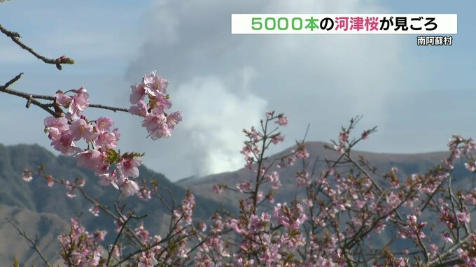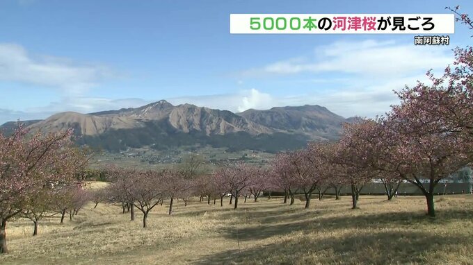 熊本県南阿蘇村で早咲きの河津桜(かわづざくら)が見ごろを迎えています。