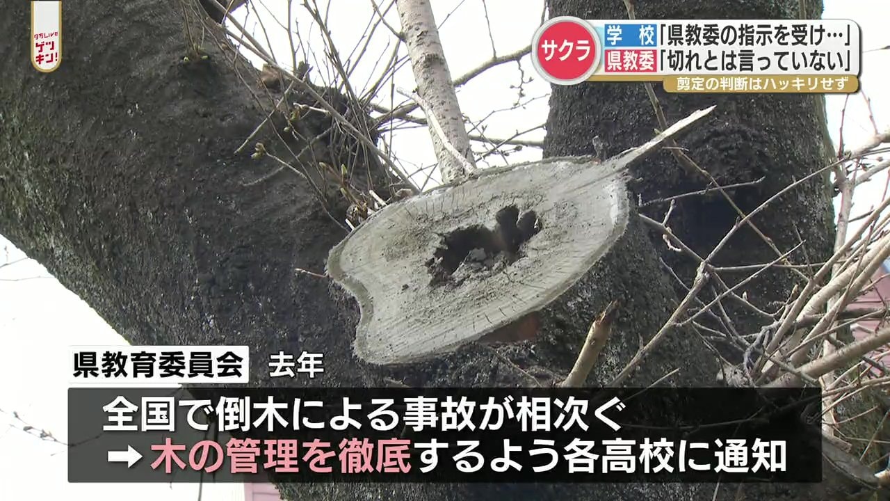 それを受け、済々黌高では強風の影響でサクラの太い枝が折れたのをきっかけに剪定に踏み切ったということです。