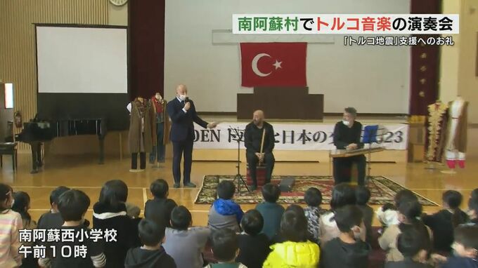 南阿蘇西小学校を訪れたのは、福岡県に住むトルコ人のエンシジ・ムラートさん(46)とトルコ共和国国立楽団に所属する男性2人です。