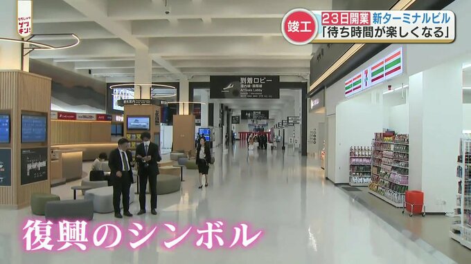 記者「(完成後)今回はじめて公開されたのがこちら、搭乗待合エリアです。県内ゆかりの26店舗のお土産やショップなどが並んでいます」