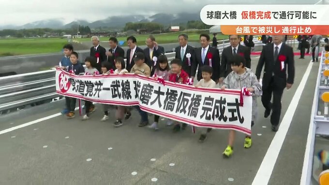 去年の台風で被災の球磨大橋 “仮設の橋”が完成し通行再開 2023年3月26日(日) 16:34 国内 2022年の台風の影響で通行止めとなっていた錦町の球磨大橋の仮橋が完成し、26日から通行ができるようになりました。26日行われた仮橋の完成式には関係者らおよそ40人が出席し球磨大橋の半年ぶりとなる通行再開を祝…