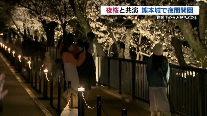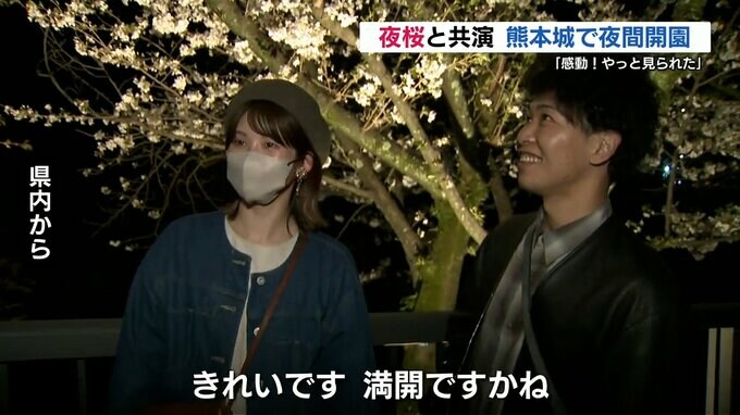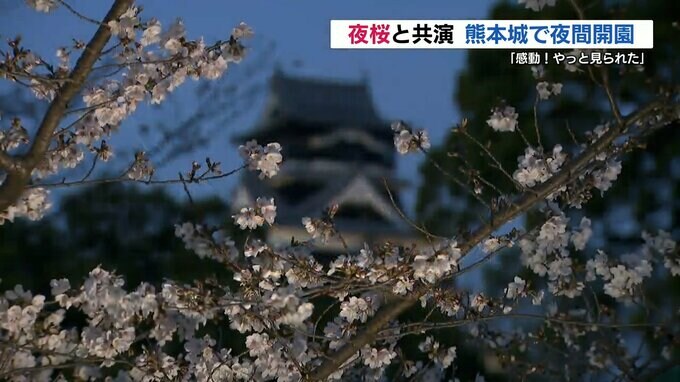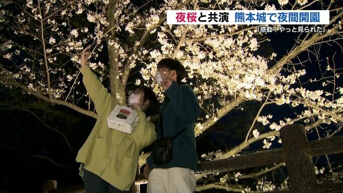 熊本城では、桜の開花にあわせて夜桜を楽しむことができる期間限定のライトアップが行われています。