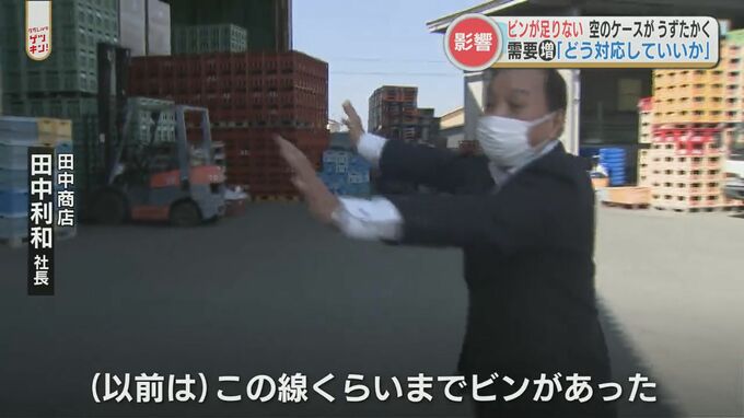 元々、缶や紙パックの普及でビンの市場が縮小していた中での今回の動き。2月ごろから急速にビンが不足するようになりました。