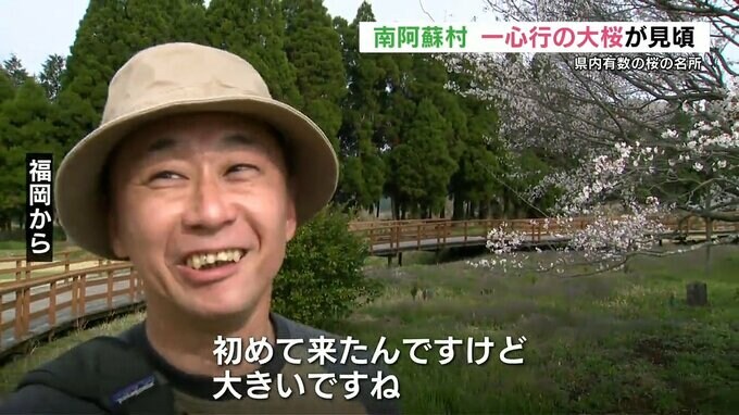 熊本県内有数の桜の名所、南阿蘇村の「一心行(いっしんぎょう)の大桜(おおざくら)」が、見頃を迎えています。