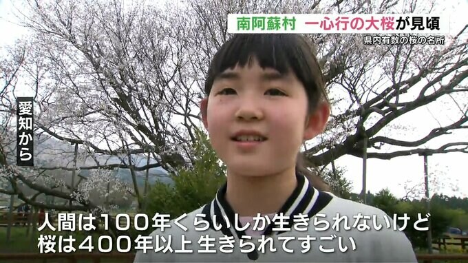 愛知県から「とってもきれいだなと思います。人間は100年くらいしか生きられないけど、桜は400年以上生きられてすごいなと思いました」