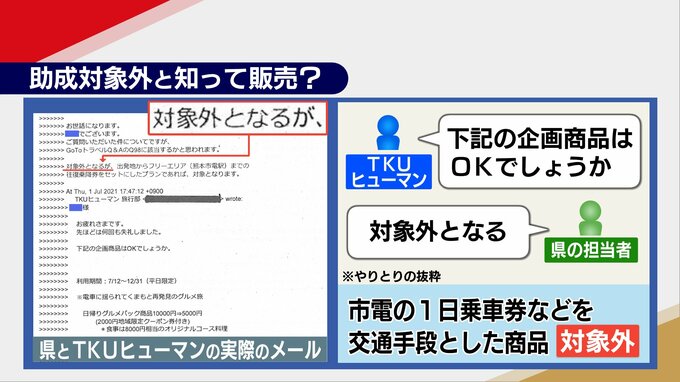 記者「この問題を巡って、県はTKUヒューマンが助成の対象外の旅行商品ということを知りながら販売した可能性を指摘しています」
