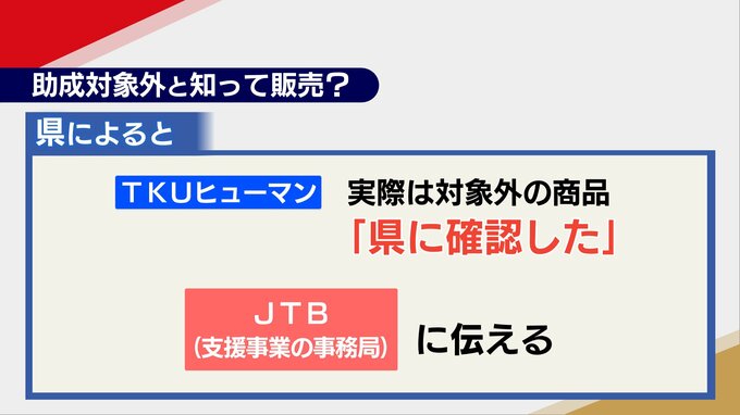 県によりますと、TKUヒューマンは支援事業の事務局のJTBに対し「この旅行商品が助成の対象になると県に確認した」と言って、不正におよそ2500万円の助成金を受け取っていたということです。