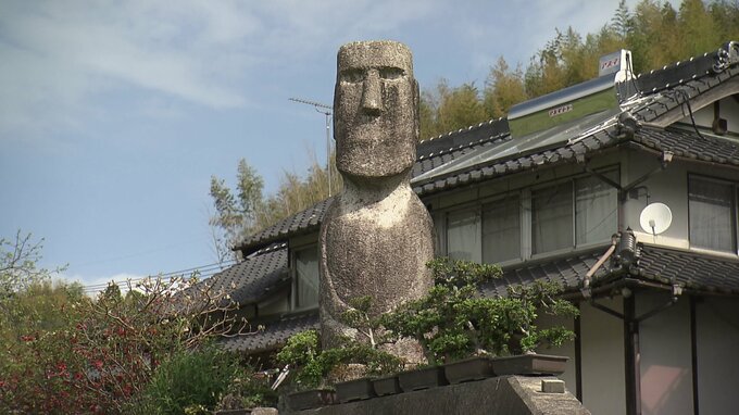 なんと日本家屋の前に1体だけ置かれたモアイ像を発見!?