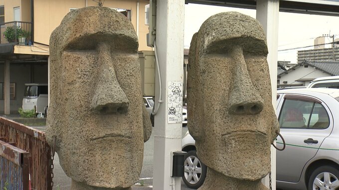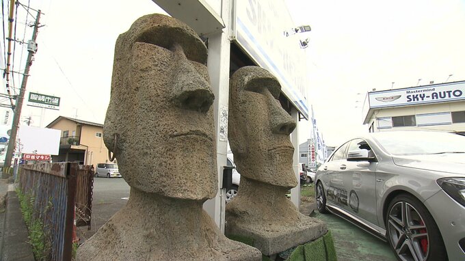 ほかにも県内でモアイ像が見られるという情報を入手し、熊本市南区にある中古車販売店へ行ってきました。