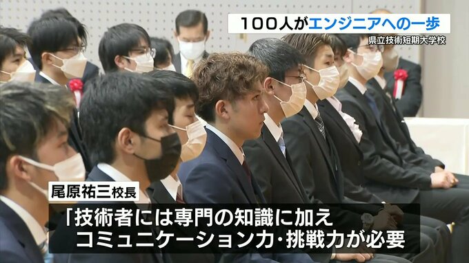 6日、熊本県菊陽町の県立技術短期大学校で入学式が行われ、102人がエンジニアへの一歩を踏み出しました。