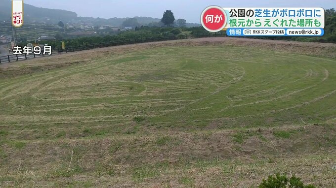 公園の芝生が広い範囲にわたってボロボロに荒らされていました。一体、何が?