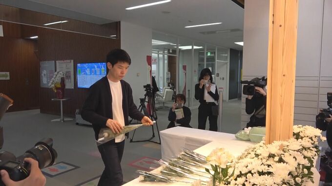 また、町の施設には献花台が設けられ、地震で亡くなった人々に花が手向けられました。