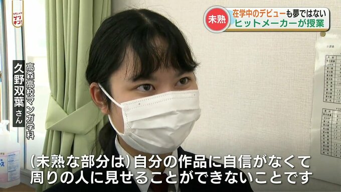 高森高校マンガ学科 久野双葉さん「(未熟な部分は)自分の作品に自信がなくて、周りの人に見せることができないことです。自信を持つだけではなくて、とにかくたくさん作品を書いて人に見せていこうと思いました」