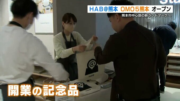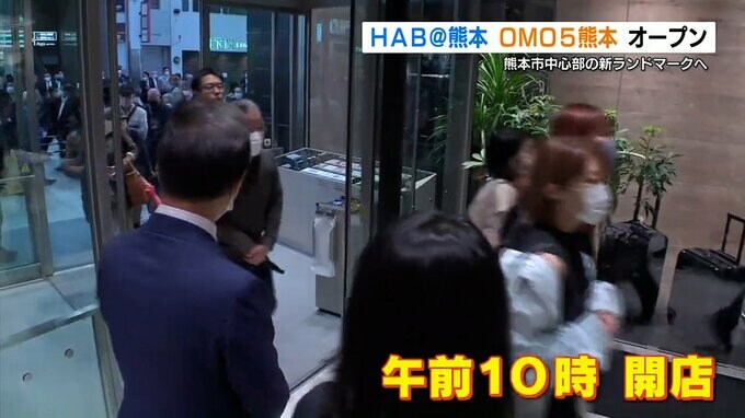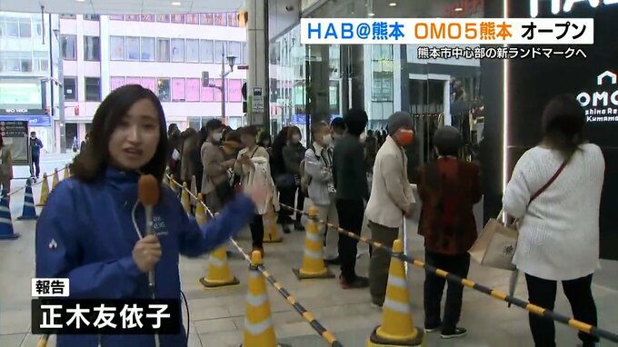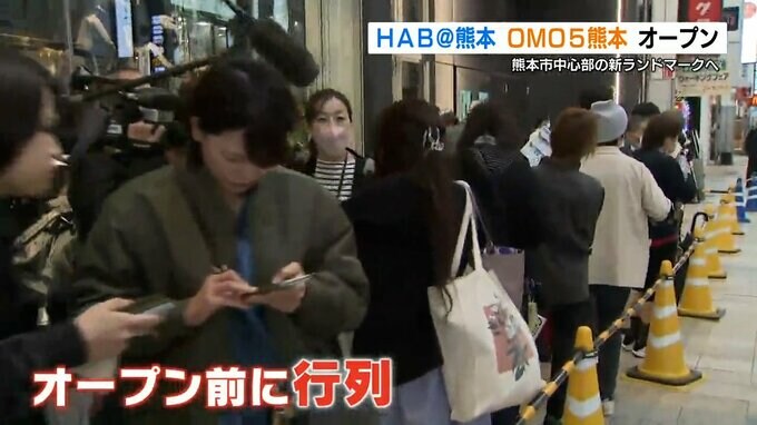 下通アーケードに面した商業施設「HAB@(はぶあっと)熊本」と星野リゾートのホテル「OMO5(おもふぁいぶ)熊本」のオープンを前に、およそ300人が列を作りました。