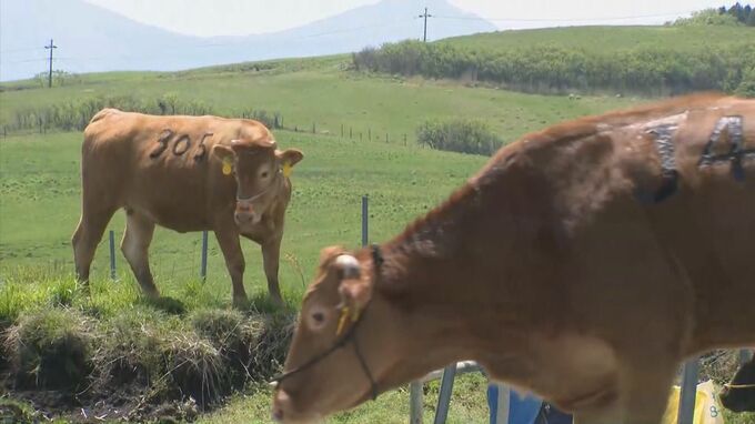 放牧地を持たない地域の牛を阿蘇の草原に放牧する「熊本型放牧」が、今年もきょうから阿蘇市で始まりました。