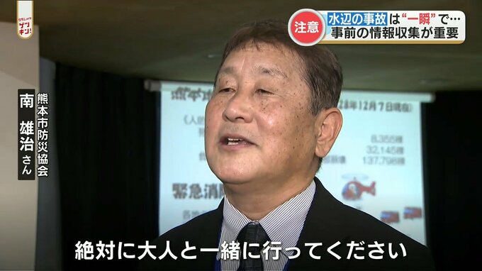 熊本市防災協会 南雄治さん「水場では絶対、子どもたちだけでは行かないでください。絶対に大人と一緒に行ってください。大人も絶対に子どもから目を離さないでください」