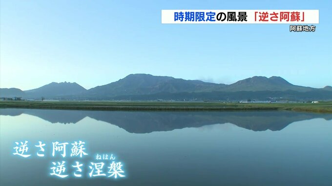 阿蘇市で見られたのは、地元で「逆さ阿蘇」や「逆さ涅槃(ねはん)」と呼ばれるこの時期限定の景色です。