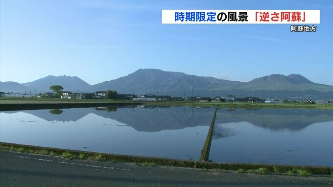 阿蘇地方では5月2日 朝、水を張った田んぼに阿蘇五岳(あそごがく)が映る「逆さ阿蘇」の景色が見られました。