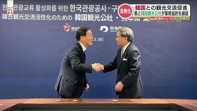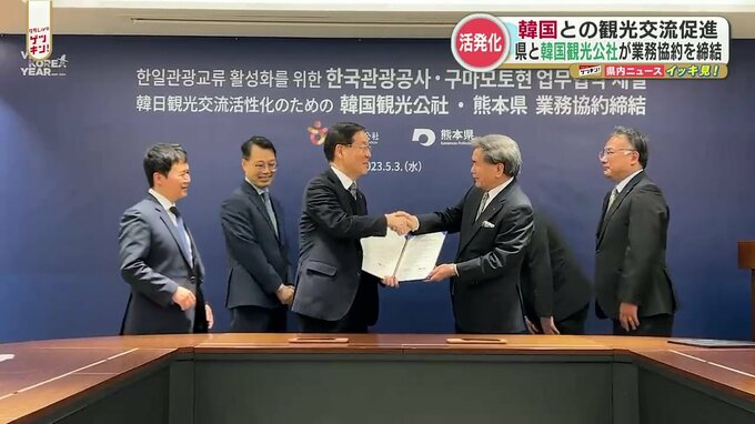熊本県は韓国との観光交流を深めるため、韓国観光公社と業務協約を締結しました。