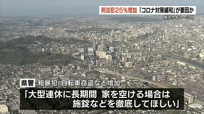 また、空き巣の件数も去年の2倍以上になっていることから、「大型連休に長期間家を空ける場合は特に施錠などを徹底して欲しい」と注意を呼びかけています。