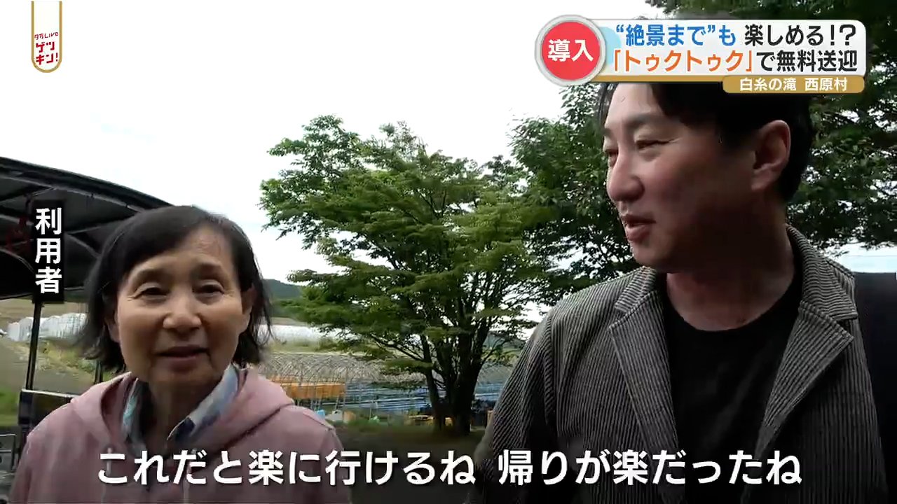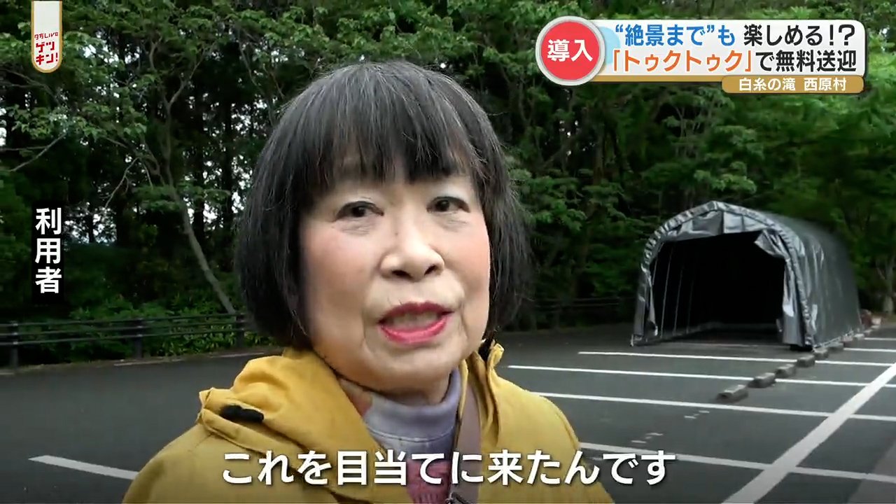 白糸の滝では、駐車場から滝までの間に急な階段があり、高齢者などの移動手段が課題に。
