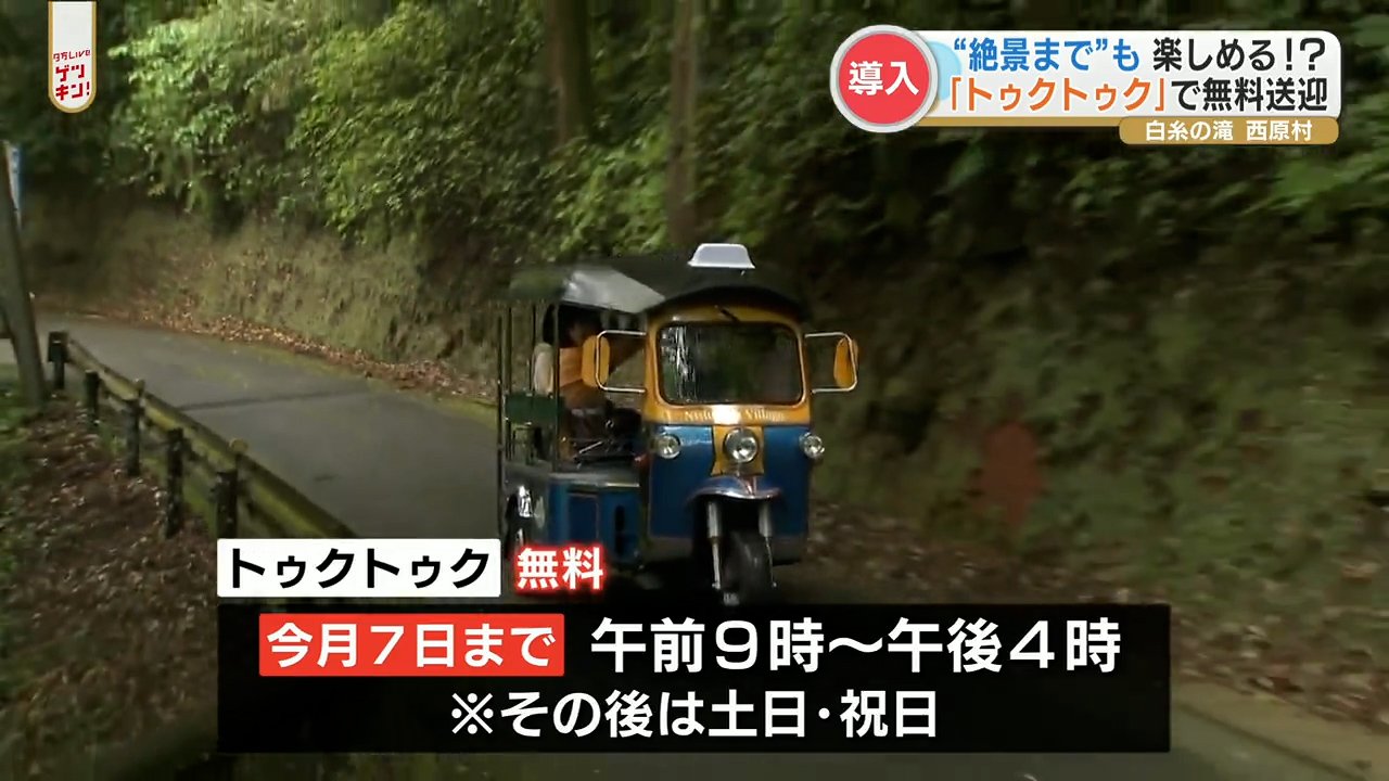 そんな観光名所に登場したのが、東南アジア・タイなどで使われる三輪タクシー「トゥクトゥク」です。