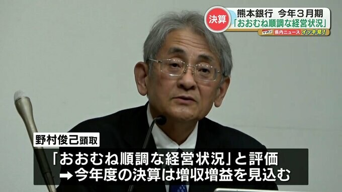 野村俊己(のむら としみ)頭取は「おおむね順調な経営状況」と評価し、今年度の決算は増収増益を見込んでいるとしました。
