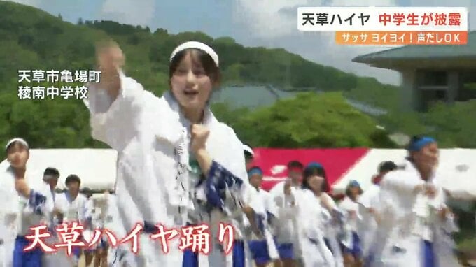 声だしOK ! 「サッサ、ヨイヨイ」 天草ハイヤで体育大会の会場熱気 2023年5月14日(日) 18:28 国内 14日、天草市の稜南中学校で行われた体育大会では、伝統文化・天草ハイヤ踊りが披露されました。踊りだけでなく、太鼓や唄、三味線の演奏まで生徒が担当するのは珍しく、先月下旬から練習を積み重ねてきました。ハ…