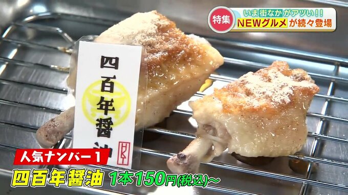 まずは人気ナンバー1の「四百年醤油」味、創業400年の老舗が作るしょうゆをベースに味つけしています。