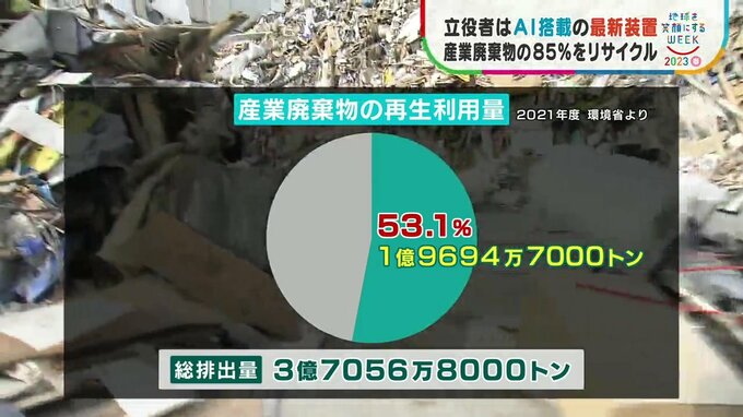 一方、この会社では分別作業にAIを導入するなどし約85%のリサイクル率を実現しています。