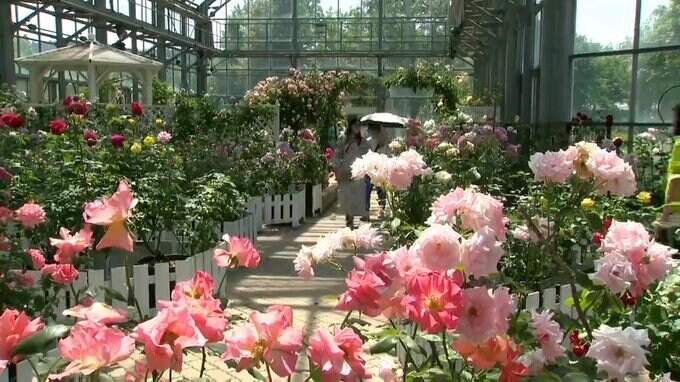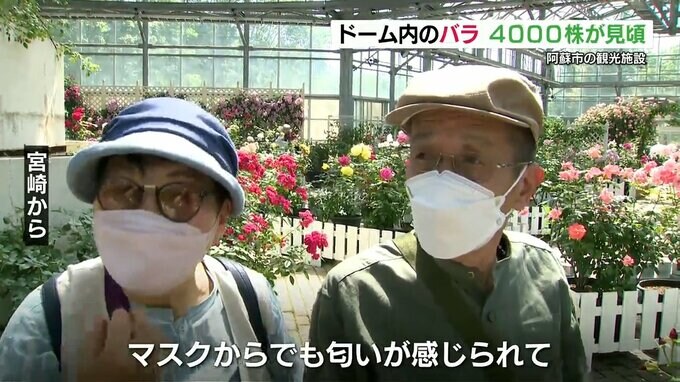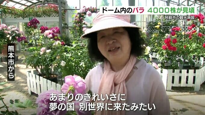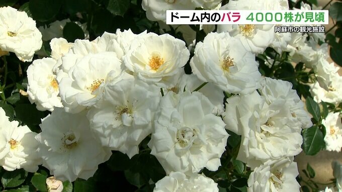 熊本県阿蘇市の観光施設で、ドームの中で育てられた4000株のバラが、見頃を迎えています。
