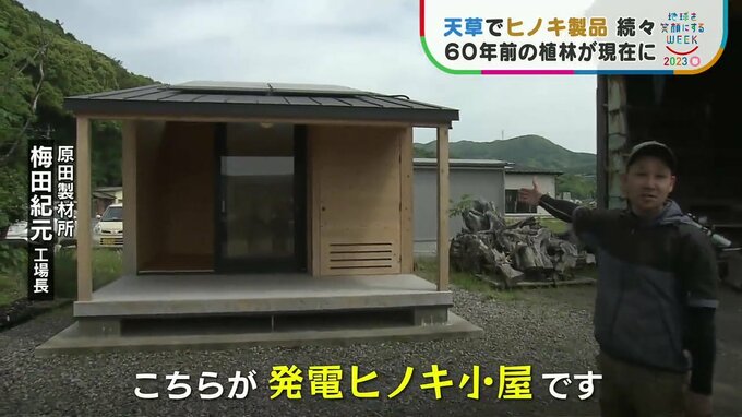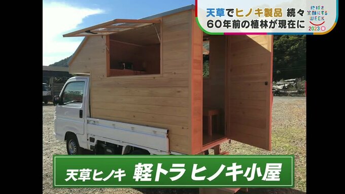 梅田 工場長「天草ヒノキの軽トラハウスです。もう少しこう皆さんに天草ヒノキを知ってもらうっていうのをもうちょっと広めていければいいなと思います。認知度がまだまだと思いますから」