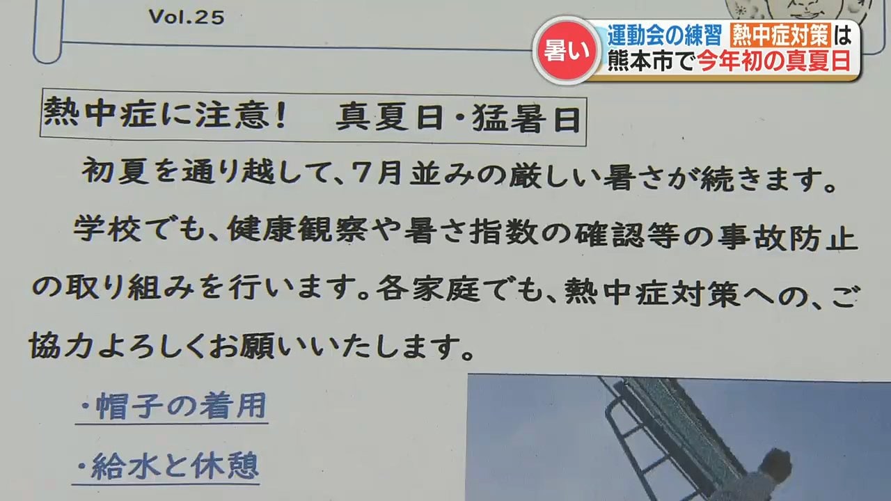 運動会は10日後。来週も練習が続くため、学校は保護者にも子どもたちへの対策を呼び掛けました。